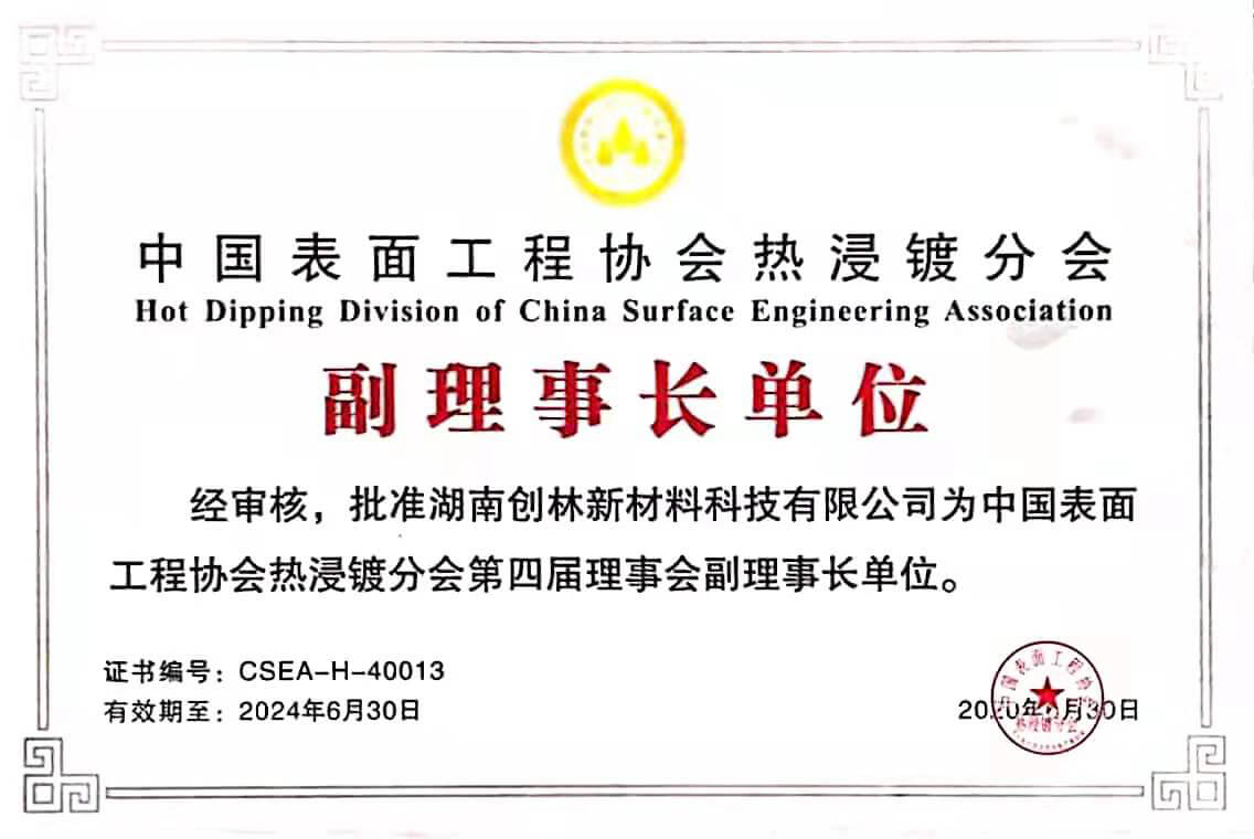 中國表面工程協(xié)會熱浸鍍鋅分會理事長單位